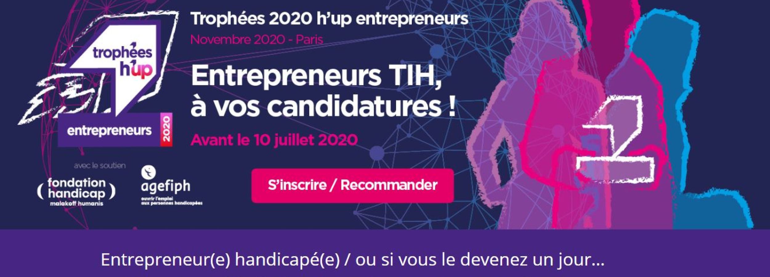 Devant le succès des précédentes éditions et le dynamisme des créateurs d’entreprise(s) handicapés en France, h’up entrepreneurs, association qui valorise les entrepreneurs touchés par un handicap, appelle à candidater pour la 3 e édition de ses Trophées d’ici le 10 juillet 2020.