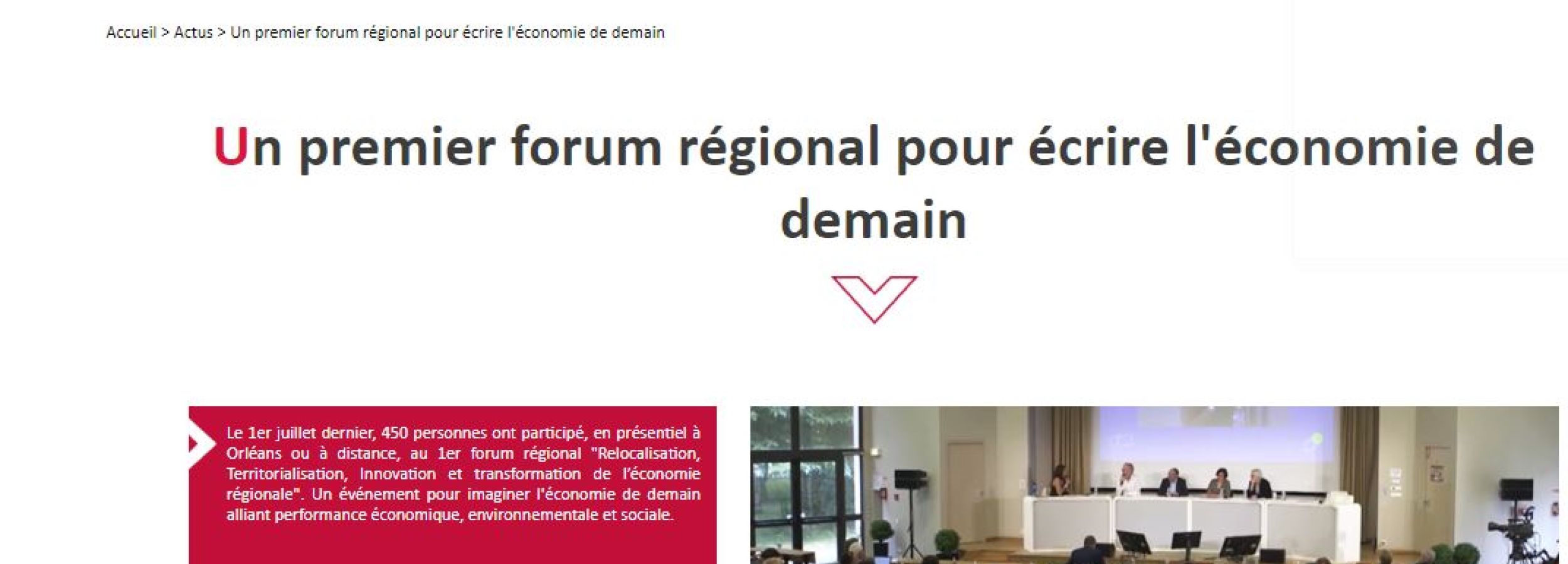 Le 1er juillet dernier, 450 personnes ont participé, en présentiel à Orléans ou à distance, au 1er forum régional « Relocalisation, Territorialisation, Innovation et transformation de l’économie régionale« . Un événement pour imaginer l »économie de demain alliant performance économique, environnementale et sociale.