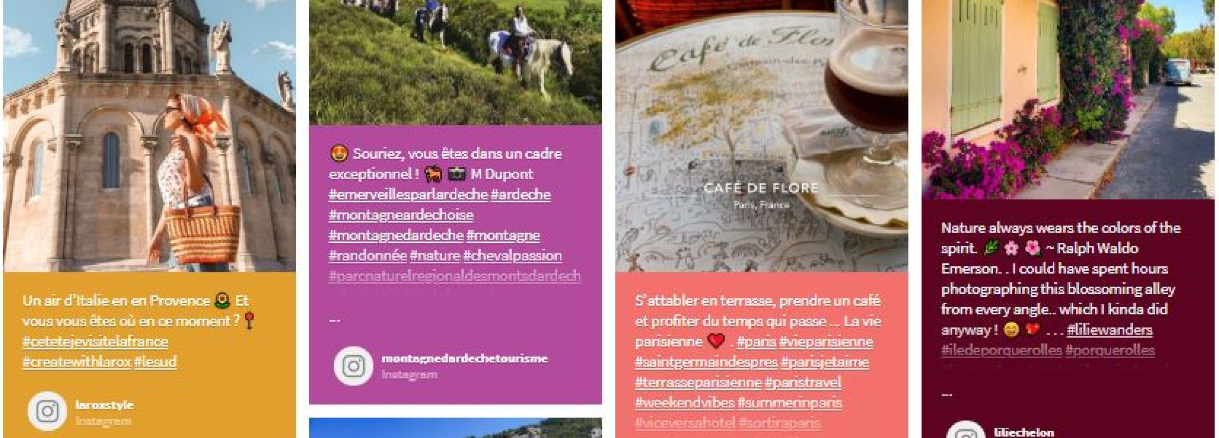 Partagez sur le vif ces précieux moments en France, en photos, vidéos, mots doux et émotions sur vos comptes Instagram, Twitter et Youtube avec le hashtag #CetÉtéJeVisiteLaFrance. Ajoutez-y le hashtag qui correspond à votre expérience du moment : #Respirer #SEvader #VoyagerEnFamille #SeCultiver #Savourer #Bouger et découvrez vos posts dans l’espace ci-dessous, pour inspirer de nouvelles envies de voyages.